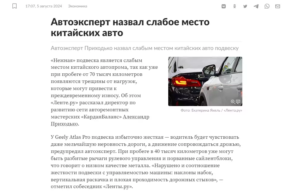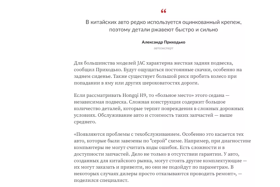 Автоэксперт назвал слабое место китайских авто